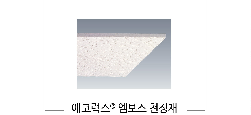 오토클레이브 건식 제품으로 장기간 온・습도에 대한 치수 변화가 적어 매립등과 같은 인테리어 천정재로 사용합니다. |
