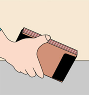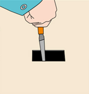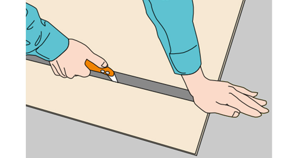 ㆍ빠른 절단을 위해서 판의 앞⋅뒷면에 커터 칼로 그어놓고 바깥쪽을 접어서 구부립니다.